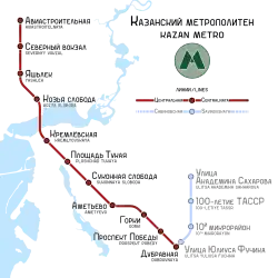 Казанский метрополитен открыт в 2005 году и в настоящее время имеет 1 линию и 11 станций. Интервал движения — 5—9 минут. Оплата проезда в метро осуществляется смарт-жетонами, бесконтактными смарт-картами и транспортными картами. Казанское метро признано одним из самым безопасных в СНГ. Для спуска в метро инвалидов на всех станциях предусмотрены пандусы, лифт есть только на станции «Проспект Победы». Метрополитен работает с 6:00 до 23:00. Список станций: