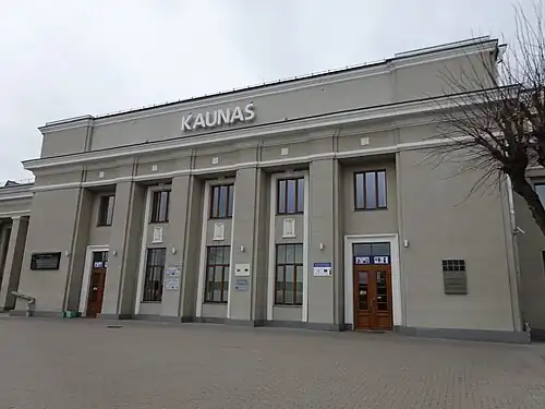 Каунас связан регулярным железнодорожным сообщением с Вильнюсом. Поезда отправляются почти каждый час, в пути чуть больше часа (экспрессы) и 1.5 ч (обычные). В остальных направлениях поезда ходят редко. Один в день прямой поезд на Шяуляй; можно также доехать до станции Kaišiadorys, что в 25 минутах пути в сторону Вильнюса, и пересесть на поезда в Клайпеду (2-3 раза в день). В Паневежис поезда не ходят в принципе. На юг, в сторону Польши, в 2014 году тоже не ходят в связи с реконструкцией путей.