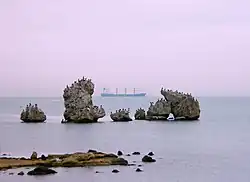 17Живописные скалы в море неподалёку от Московского пляжа, ул.Московская, выход на пляж(рядом с античным городищем Мирмекий). Скопление живописных скал на фоне Керченского пролива. Есть версия, что знаменитый античный герой Ахиллес был родом из этих мест.сен2019