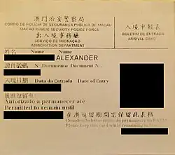 Граждане стран, которым в Макао нужна виза (за исключением граждан нескольких стран третьего мира, см. ссылку выше), могут получить её по прибытии, оплатив визовый сбор в MOP 200 (MOP 100 для детей до 12 лет). Выдаётся мультивиза сроком на 30 дней.