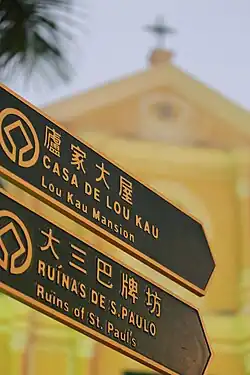 Формально официальными языками Макао являются китайский и португальский, в китайском, как и в Гонконге и в отличие от материкового Китая, используется традиционное правописание. На практике местные жители в основном говорят на кантонском диалекте китайского, который от стандартного мандарина отличается очень сильно, а португальский в Макао не знает практически никто и несёт он в основном церемониальную функцию.
