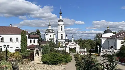 1☆Свято-Никольский Черноостровский монастырь, ул. Кутузова, 1.+7(48431)2-14-69.🕑7:00–18:00. Монастырь возник в конце XVI века на месте Никольской церкви, построенной князьями Оболенскими на 200 лет раньше. Находится на высоком берегу реки Лужи на холме, прежде известном как Чёрный Остров, от чего и получил свое имя. Монастырь неоднократно попадал в зону боевых действий и перестраивался. Например, знаменитое Малоярославецкое сражение произошло прямо тут, на монастырских воротах до сих пор можно видеть следы от французской шрапнели, сохраненные по распоряжению императора Александра I. Современный вид обители — результат реконструкции после войны 1812 года и отчасти современного строительства. Оба местных храма, собор Николая Чудотворца (1825-1843) и церковь Корсунской иконы Божьей матери (1814), выполнены в стиле провинциального классицизма; вторит им и колокольня (1821). Сейчас это действующий женский монастырь.окт2022