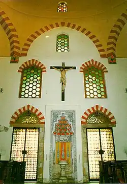 Интерьер католического собора на главной площади (бывшая мечеть паши Гази Касима)Замки, повешенные влюблёнными парами в центре города