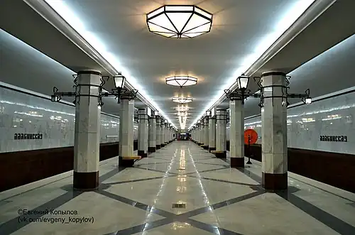 2Железнодорожный вокзал, Комсомольская пл. 1. Открытое в 2001 году стеклянное здание ярко-синего цвета было первым российским вокзалом в стиле хай-тек. Его художественные достоинства спорны (злые языки называют вокзал не иначе как «концом Льва Толстого» по расположению на соответствующей улице), но капромантическая архитектура весьма необычна; считается, что это самый высокий вокзал Европы (101 м вместе со шпилем). Изнутри он слегка напоминает многоуровневое офисное здание, причём между уровнями можно перемещаться по плавной наклонной дорожке, не пользуясь ни лестницей, ни лифтом. Зоны зала ожидания расположены по периметру этого спирального «серпантина». Вокзал просторен и стерильно пуст, минимальный перекус предлагает лишь стойка с кофе и выпечкой, возле которой даже столиков почти нет. На привокзальной площади дело с едой обстоит лучше: там находятся KFC (8:00–23:00), узбекское кафе «Наманган» (круглосуточно) и столовая «Лаврушка» (9:00–21:00). На верхних этажах вокзала панорамная смотровая площадка и зимний сад, куда пускают по билету (спрашивайте в сервис-центре на 2 этаже вокзала).сен2022