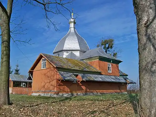 2Церковь Преображения Господня(Церква Святого Преображення Господнього), село Волиця. Трёхсрубная деревянная церковь с крупным куполом на низком восьмерике построена в 1770-е годы вместо более старой церкви, известной с конца XVI века. На рубеже XIX и XX веков к апсиде с юга пристроили ризницу, а к западной стене притвора – пронаос (проще говоря, сени), каменная колокольня появилась в 1905 году. Церковь пережила Вторую мировую войну и не закрывалась в советский период.фев2023