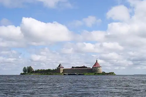 Город известен главным образом благодаря крепости на Ореховом острове. Крепость, в то время названная Орешек, основана в 1323 году новгородцами. С 1612 года принадлежала шведам, носила название Нотебург (точнее, Нётеборг). Во время Северной войны отбита у шведов, переименована в Шлиссельбург (ключ-город). С 1723 года крепость утратила военное значение и использовалась как тюрьма. В Великую Отечественную войну крепость сыграла важнейшую роль в обороне Дороги жизни, была серьёзно разрушена.